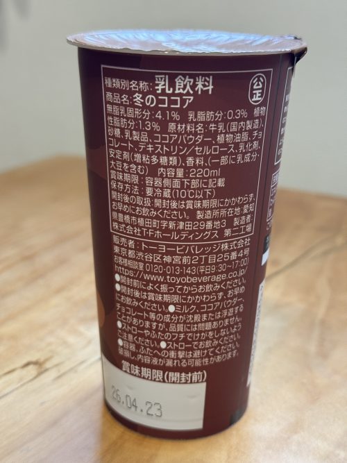 ココアの濃さは普通で、ミルク感とのバランスはとても良いと思いました。